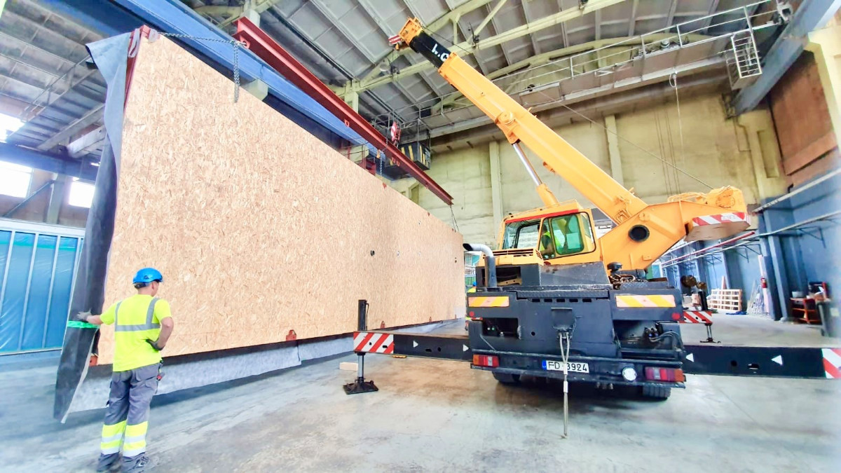 The manufacturing process begins with selecting the needed materials and cutting them to the required specifications. Then the materials pass on to the frame panel assembly surface, where all the elements are conjoined with nails or screws, and after a geometry test the required sheet material is fixed to the panel. In the next phase of production the wall is flipped onto the other side, thermal and vapour insulation is laid and the furring fixed. In the following phase the door or window is put in, and the panel is completed. After a final quality check, the product is packaged and shipped to the client.