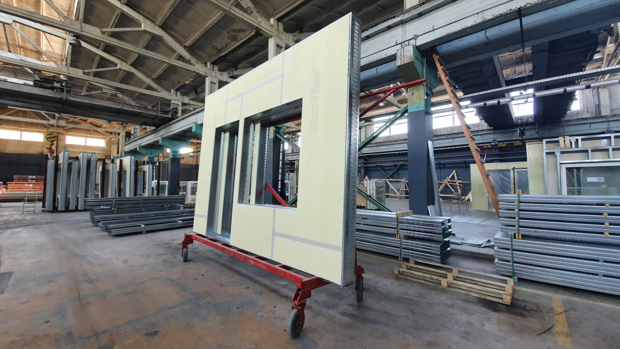 - Construction using wood frame panels in combination with metal elements;